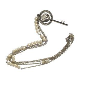 Las Vegas Key Dice Necklace 17" Silver Tone Faux Pearl Rhinestone Accents