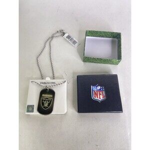 Up for grabs is a brand new Las Vegas Raiders Dog Tag Necklace Stainless Steel NFL Licensed with Gift Box. Never worn or used. Measurements Laying flat are included in photos, PLEASE compare them to your own for proper fit! Please refer to all photos. Ask any questions prior to purchasing. Thanks!