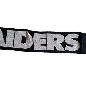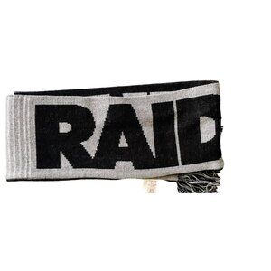 This Las Vegas Raiders scarf features the team's iconic logo and colors, perfect for displaying team spirit. Its knitted design provides warmth and comfort during colder months.