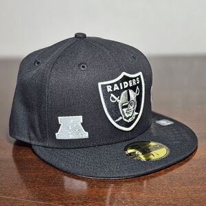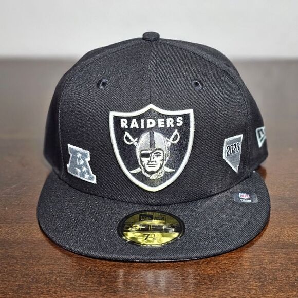 Las Vegas Raiders New Era Identity Hat 59FIFTY Black Silver Patches 7 1/8 Logos