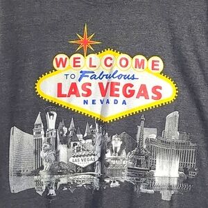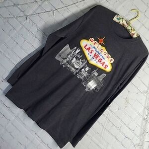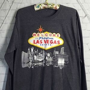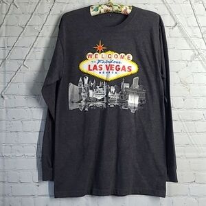 Las Vegas Strip Nevada Casual Gray Graphic Print Long Sleeve Tee Men's Size 2XL