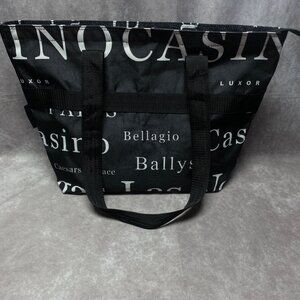 Las Vegas Theme Black Tote Bag With Zipper Closure & Interior Pocket