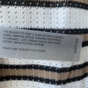 Las Veritas Striped Crochet Knit Shirt Men XL Tan Short Sleeve Retro Beach NWT