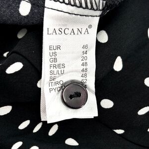Lascana Dress Sz 14 Asymmetrical Dot Print Halter Neckline Black Sleeveless NWT