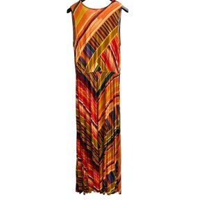 Lascana Dress Womens 44 US 12 Earth Tone Contrast Stripe Maxi Vacation Beach