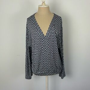 Lacana women's long sleeve top Multicolor printed shirt V neck, pullover 100% Viscose Size US 4/6