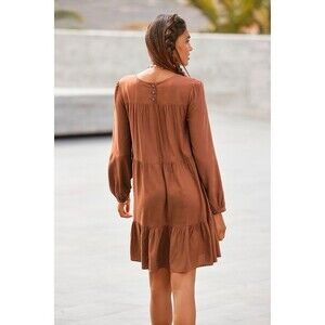 Lascana Mini Dress 4 Rust Brown Long Sleeve Ruffle Tiered Boho Peasant Cottage