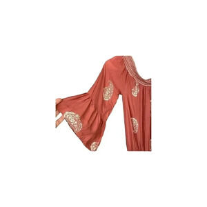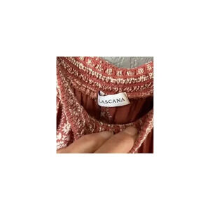 This Lascana romper is a women's size 2, featuring a White paisley pattern. Made from modal, it offers a breathable fabric ideal for casual summer occasions. The romper has a long sleeve design with an off-the-shoulder neckline and includes smocked details at the neckline and waist for added comfort. It is pre-owned. Keywords: Lascana, romper, one-piece, White, paisley, modal, off the shoulder, smocked, casual, summer, women's clothing, long sleeve.