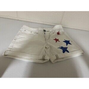 These Lascana White Denim American Themed Short Shorts with Back Pockets in size 2 are perfect for a casual occasion. Made of light-wash cotton denim with a solid white color and star accents, these regular fit shorts feature a button closure and flat front design. The hot pants style is ideal for summer and spring seasons, and the back pockets add a practical touch to the fashionable piece. Suitable for various activities such as beach outings, cycling, typing, soccer, dance, and cheerleading, these shorts are a versatile addition to any woman's wardrobe.