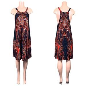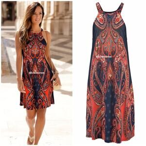 Lascana for Venus Red & Blue Paisley Patterned High Neck Dress SZ L $55
