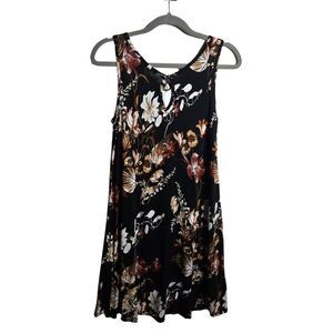 Lascana for Venus Tropical Dark Floral Summer Dress Keyhole Fit & Flare Size XS