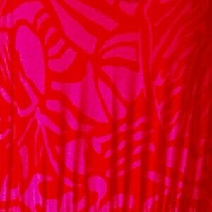 Lascana x VENUS Tiered Sleeveless Maxi Dress Hot Pink and Red Abstract Print Stretch Fabric with Elastic Waist and V-Neck Front and Back Athletic Fabric Stretchy Vibrant Electric Colorful Sexy Peasant BOHO Bohemian Flattering Beach Vacation Travel