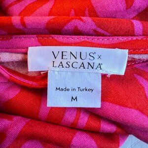 Lascana x VENUS Tiered Maxi Dress Pink and Red Abstract Stretch V Neck Size Med