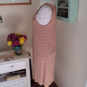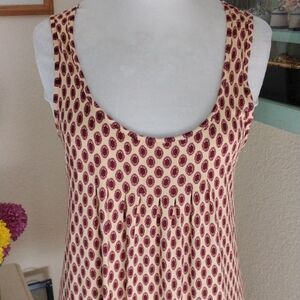 Pull on and go, this is lovely, comfortable and great looking. Medallion print. Size 4 measures 38 at stitched down chest.44 at waist, ,46:at hips, 54 at bottom hem. 39.5 long from shoulder to hem. Ready for you.
