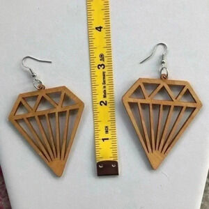 Laser Cut Classic Style Diamond Wood Wooden Drop Earrings