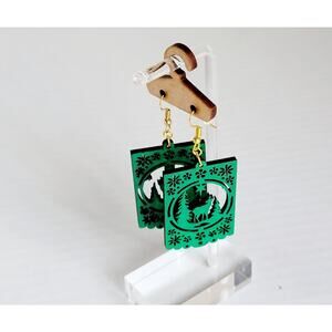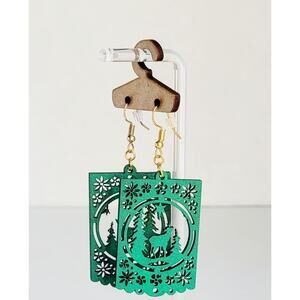 Add a touch of nature to your holiday outfit with these laser-cut green xmas tree earrings. Handcrafted from high-quality wood, these artisanal dangle/drop earrings feature a unique rectangle shape and a secure hook closure. Perfect for Christmas occasions, these earrings stand out with their charming design and festive color.