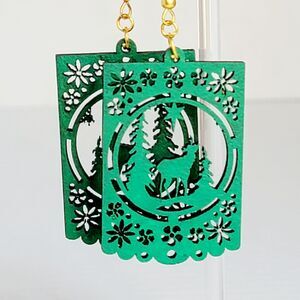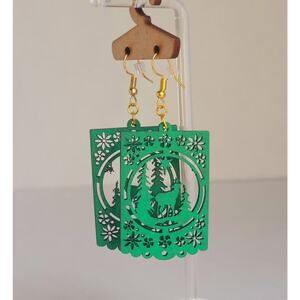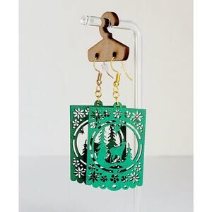 Laser Cut Green Statement Xmas Tree Wood Earrings Jewelry Accessories Artisanal