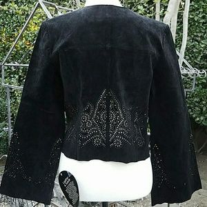 Amazingly fantastic laser cut suede jacket. Rich suede leather scent.
