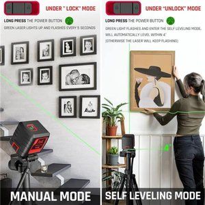 🧿【 Self-Leveling, Manual, Pulse Mode】When you unlock the pendulum, the laser level will automatically level within 4° (otherwise the laser will keep flashing). Lock the pendulum and switch to manual mode to suit your needs for adjustment from different angles.