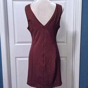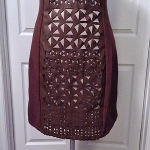 Laser cut brown dress with beige liner. Zips in back. 65% Cotton 35% Polyester. EUC.