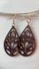 Laser cut wood long tear drop 24k gold plated earrings nwt