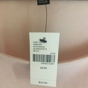 A crepe-knit top with laser-cut scalloped edge at hem and 3/4 bell sleeves. Bust darts. Light Pink color. Shirt is 28” in length. Size 22/24. NWT.