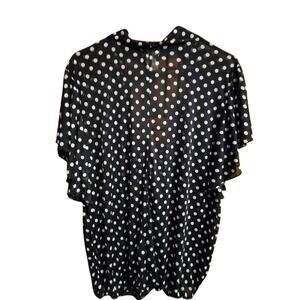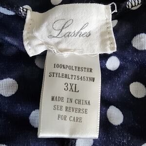 Lashes Women's Semi Sheer Polka Dot Elastic Waist Tie Accent Blouse Plus 3X