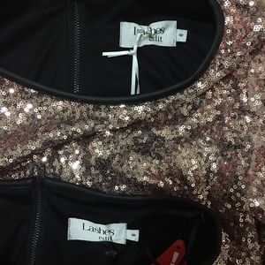 NWT. Super hooot! In love with this matching set. Features an embellished crop top and pencil skirt in pink sequins and faux leather trimming. Exposed zipper on back. Size UK 8 which is US 4. Fully lined 100% polyester. NO TRADES.