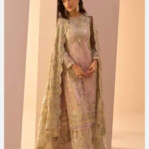 Lashkaraa Dusty Pink Embroidered Straight Suit - Size M