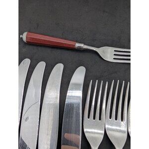 Laslo for Mikasa Silverware Plastic handle Burgundy faceted 17 Pieces HTF READ