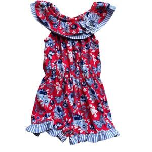Lass Little Red and Blue Floral Romper Toddler Girl size 24