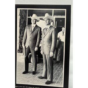 A refined piece of vintage history capturing the essence of Americana Western wear. This Lasso Western Wear advertisement showcases impeccably tailored cowboy suits from the 1970s. The historic scene, set in San Antonio, Texas, features “Arizona” and “Las Vegas” suit designs, exuding classic charm and rustic elegance.