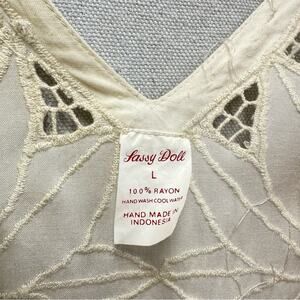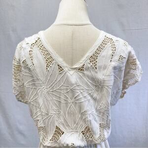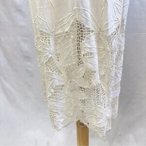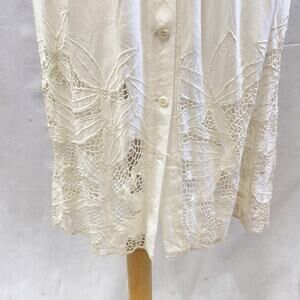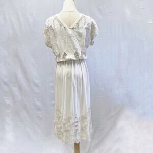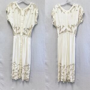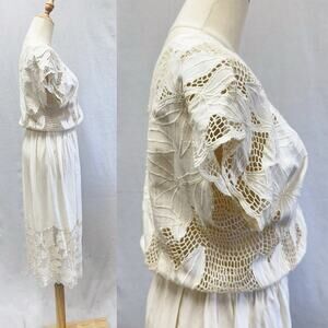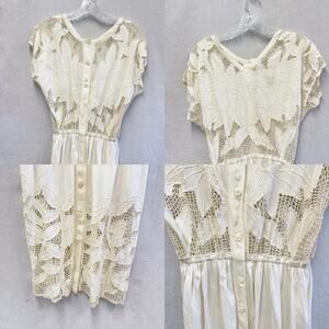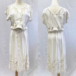 Lassy Doll white Rayon & crochet detail button up blouson midi dress size large