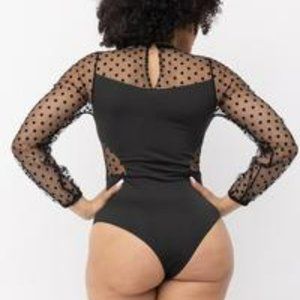 Last 1 Black Gold Studded Bodysuit Corset Silhouette Delicate Swiss Dot Large