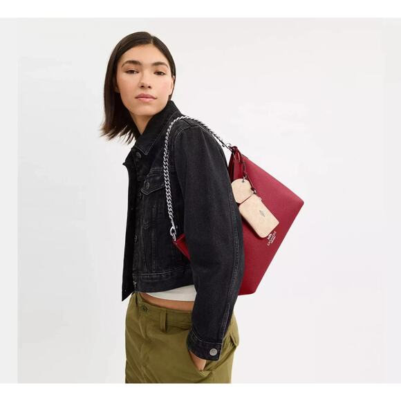 Last 1 ‼️Coach CBI94 Laurel Shoulder Bag Mirror Charm Pouch Dark Cardinal/Walnut