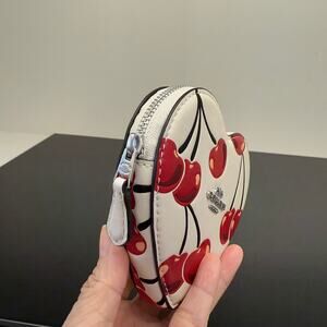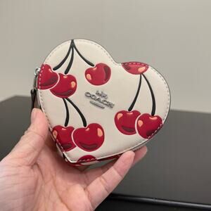 Last 1 ‼️Coach CZ477 Heart Coin Case With Cherry Print