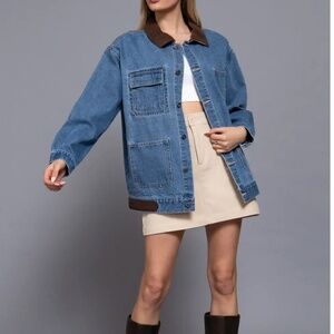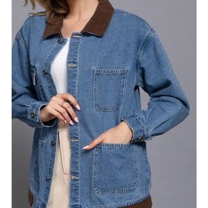 Last 1! NWT Denim Barn Jacket with corduroy collar and trim