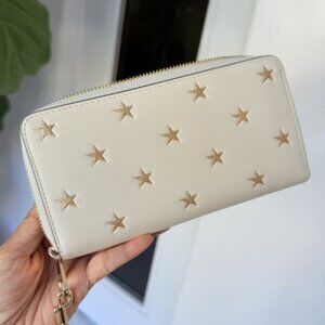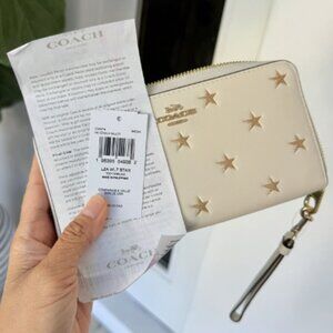 Last 2 ‼️Coach Long Zip Around Phone Wallet CW479 Chalk Gold Star Print Leather