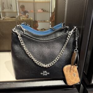 Last 2‼️COACH CBI94 Laurel Shoulder Bag Mirror Charm and Pouch Black/Tan