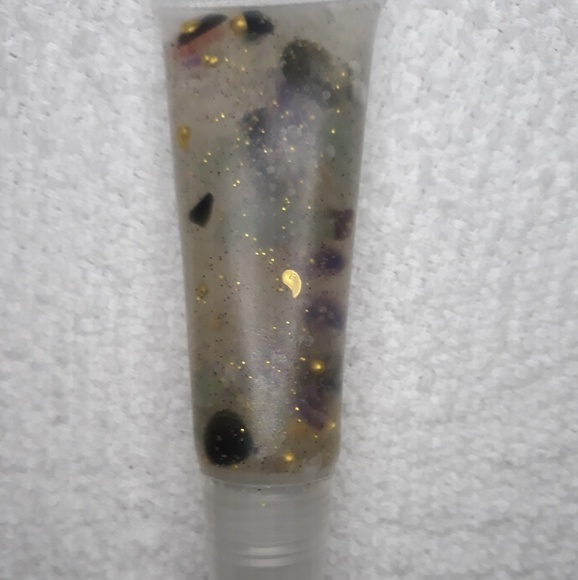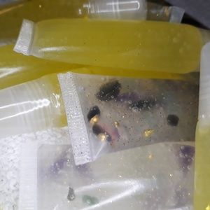 A beautiful mix of bits and pieces from finished products to create this beautiful mix. A mix of obsidian, jade, amethyst and apricot agate along with gold sequins and glitter.