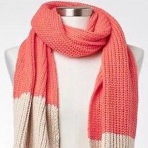 Bright color block rib scarf by GAP. Features a cheery coral and nude combination of color, rib detail, and is perfect for Fall through Spring. This item is gently loved, has been worn 1-2 times, and is in great condition.