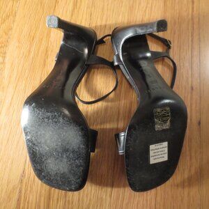 Last chance. No more price reductions Worn once, NO box or bag, CASADEI Black buckle design high heel sandals, size 6. All leather, made in Italy Large buckle decoration on toe strap, quarter strap around ankle with adjustable buckle. 4 inch heel