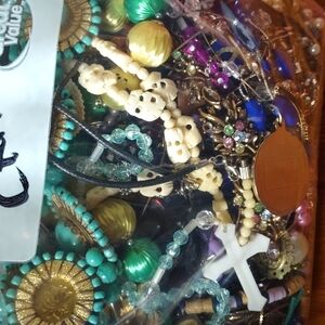 You will receive a gallon sized bag full of beads, pendants, broken chains, cords, charms, etc. Jewelry that is tangled is commonly found in these lots. Tangled jewelry, too.