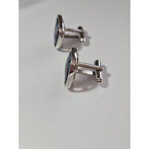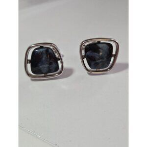 Silver colored cufflinks have black and gray marbled stones. Marked Hickok usa.