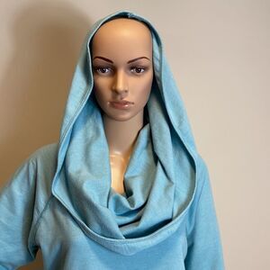 ❤️Last Chance LVR Organic blue cowl neck long sleeve hooded pullover size M