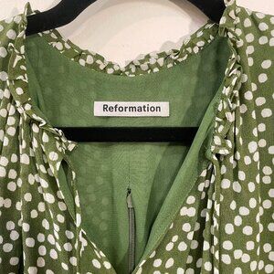 Last Chance! New Reformation Marcy Spotted Mini Dress Moiret Green 4, S $218
