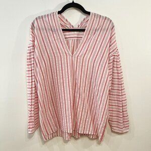 Last Chance! New Vince 100% Cotton Oversized Stripe Blouse Red White Small $225