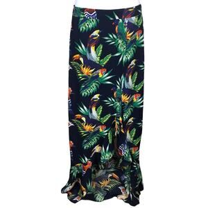 Last Girl Maxi Skirt Ruffle Tropical Toucan Rainforest Womens M Navy Multi-Color