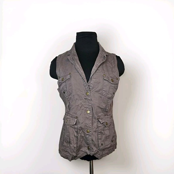 Last Kiss Khaki Y2K sz L Cargo Vest