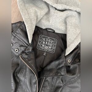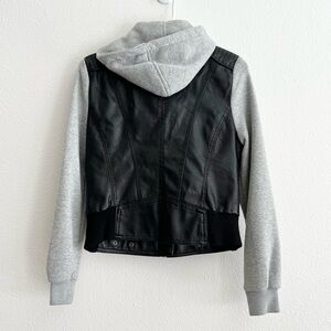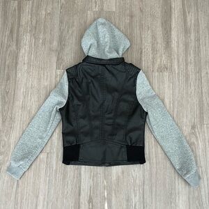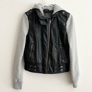 Last Kiss Y2K Black Leather Hybrid Gray Hooded Zip Moto Jacket Size Medium